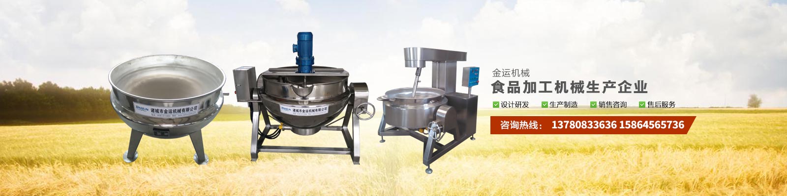 主要產(chǎn)品有:行星攪拌夾層鍋、夾層鍋、壓力煮鍋、各種餡料炒鍋、殺菌鍋(殺菌釜)、巴氏殺菌機、清洗流水線、風干線、真空包裝機、滾揉機、斬拌機、鹽水注射機、大蒜脫皮機、大蒜分瓣機等,廣泛應(yīng)用于各種食品加工、食品殺菌及農(nóng)產(chǎn)品深加工、化工、醫(yī)藥的生產(chǎn)等。可滿足外資企業(yè)、合資企業(yè)及國內(nèi)大中小企業(yè)生產(chǎn)需求,產(chǎn)品暢銷全國各地。